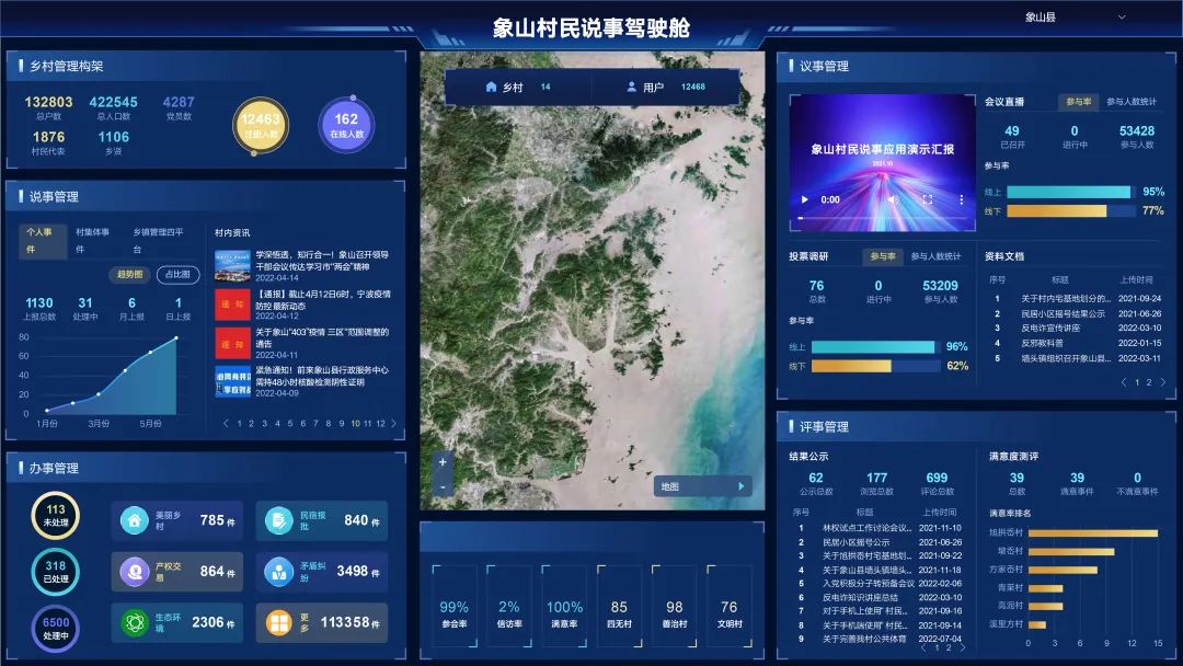 象山县位于浙江省东部,辖10镇、5乡、3街道、355个行政村,常住人口56.9万人,其中乡村常住人口21.9万人。近年来,象山县积极探索“村民说事”制度迭代升级,把解决群众议事协商“六难”问题作为突破口,对村级事务治理进行流程再造、制度重塑、业务协同,探索开发“象山村民说事”线上应用系统,实现村级事务“说议办评”线上线下融会贯通、整体闭环。自2021年6月上线以来,已在全县18个镇(乡、街道)、36个行政村落地推广,注册村民2.3万人,日均用户活跃度1300人次,累计召开线上线下说事会38627次,收到各类议题6.2万余项,解决率96.4%,群众满意率95.6%,农村信访数下降31%。