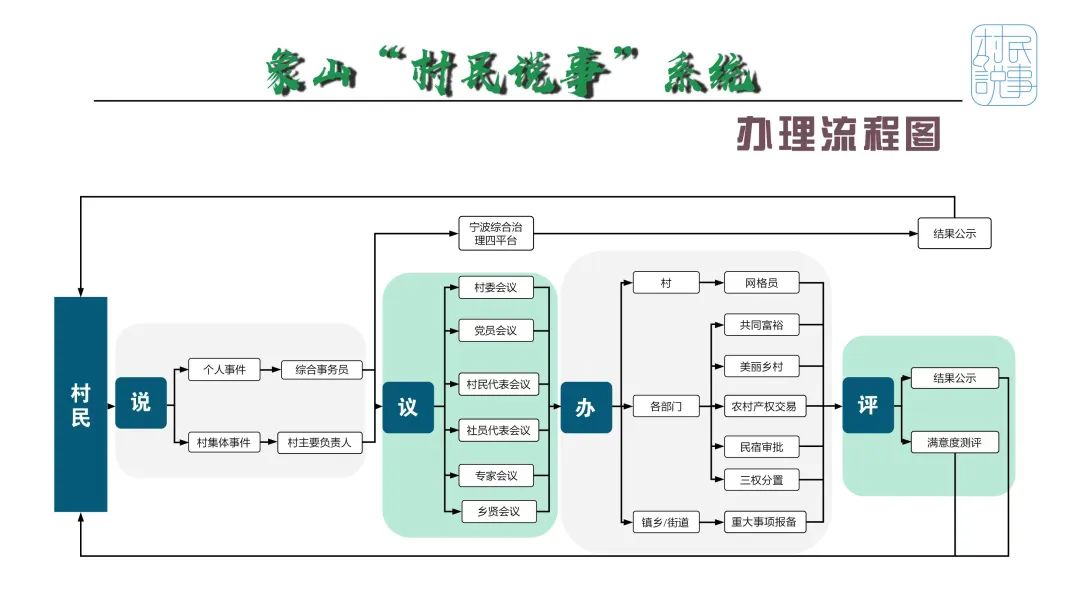 编者按:象山县针对现有“村民说事”制度流程中存在的短板不足,坚持问题导向、需求导向,创新推出“线上+线下”模式,推动“说议办评”数字化升级、全闭环运行,实现“群众说得出、决策议得好、事情办得实、成效评得准”,走出了一条党建引领、村民主体、“四治”融合的乡村善治之路。