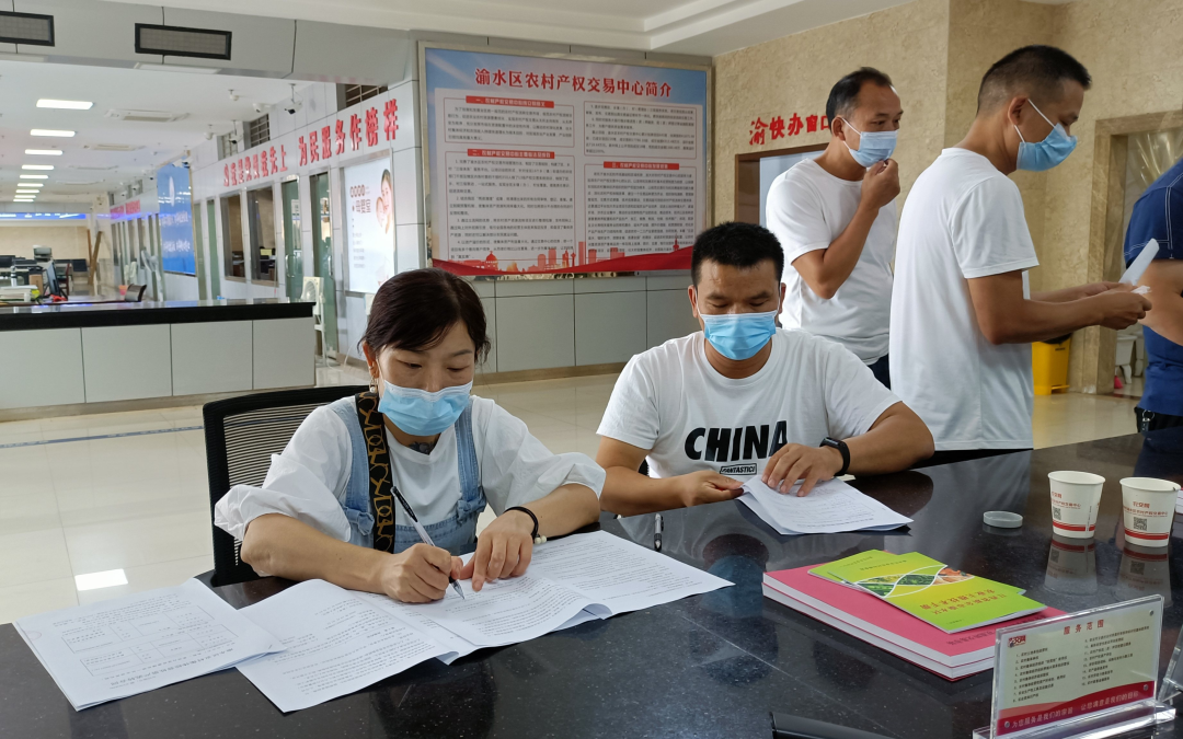 村集体代表与承包方在渝水区农村产权交易中心签订交易合同