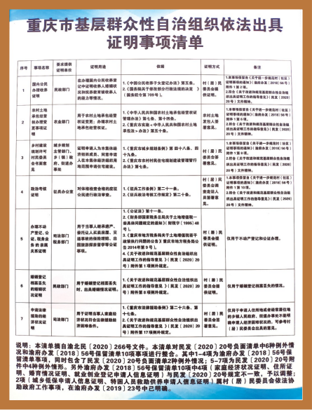 基层群众性自治组织依法出具证明事项清单
